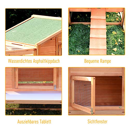 ✅Stabiel verwerkt: je verblijf voor kleine dieren is gemaakt van massief dennenhout en het hekwerk is gemaakt van verzinkte draad. Het dak is ook bedekt met groen dakvilt.