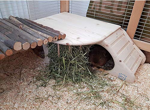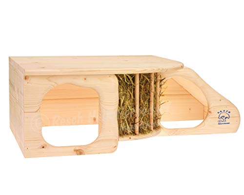Resch Nr11 Knaagdierhol XL, natuurlijk massief sparren/met trap voor ligterras, geïntegreerde hooibak, grote ingangen en afgeronde hoeken, 60 x 19,7 x 37 cm