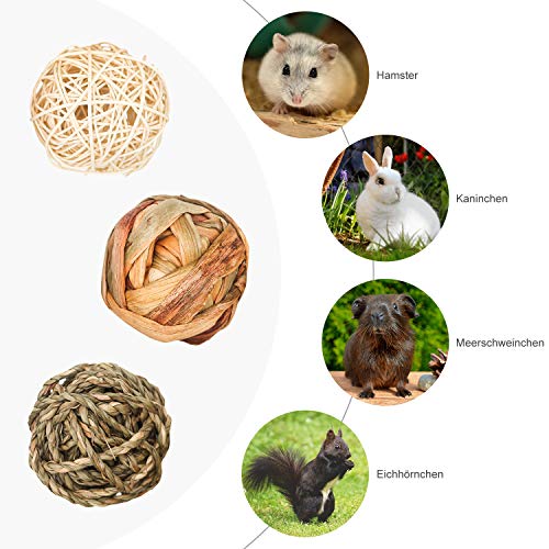 Specification: 9 stuks kauwballen, kleine dieren, kauwspeelgoed, grasspeelgoed voor konijnen, cavia’s, chinchilla’s, hazen, natuurlijke…