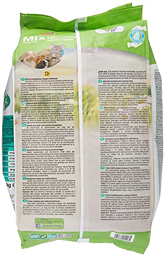 Mix – knaagdieren die planten eten. Compleet voedsel voor plantenetende knaagdieren. Dit uitgebalanceerde en vitaminerijke voer dekt alle voedselbehoeften van knaagdieren zoals dwergkonijnen, cavia’s, chinchilla’s en deguus. Zijn multivitamine-formule, die zowel natuurlijke als gepuffte, tot vlokken verwerkte of geëxtrudeerde korrels omvatt, maakt dit voer tot een krachtig voedsel dat door al deze kleine knaagdieren zeer gewaardeerd wordt. Niet geschikt voor hamsters, ratten, muizen en racemuizen. Wist je het? Vitamine A ondersteunt de groei. Vitamine D3 draagt bij aan een goede ontwikkeling van de botbouw. Vitamine E is nodig voor de vruchtbaarheid. Vitamine C stimuleert de afweer van het organisme en is onmisbaar voor het cavia, dat deze vitamine niet zelf kan maken.